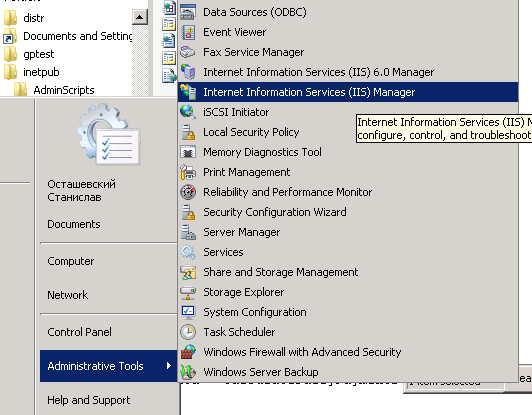 1. Locate IIS Manager under Administrative tools of Control panel